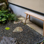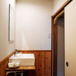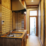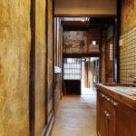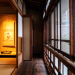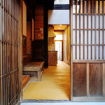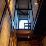 聚楽廻と呼ばれるこの地区に残る町家を宿へとリノベーション。元の町家の姿へ戻すことにこだわり、数寄屋大工の洗練された技を借り改修に挑んだ。塞がれていた土間の天井を取り除き、吹き抜けへ戻すことで二階窓から光を取り入れる。そのまま残したおくどさんの跡と土壁は歴史と色気を感じさせる。町家は家主の手入れと共に磨かれ、良い味が出てくる。ここは家主の管理が隅々まで行き届いた気持ちのいい空間である。